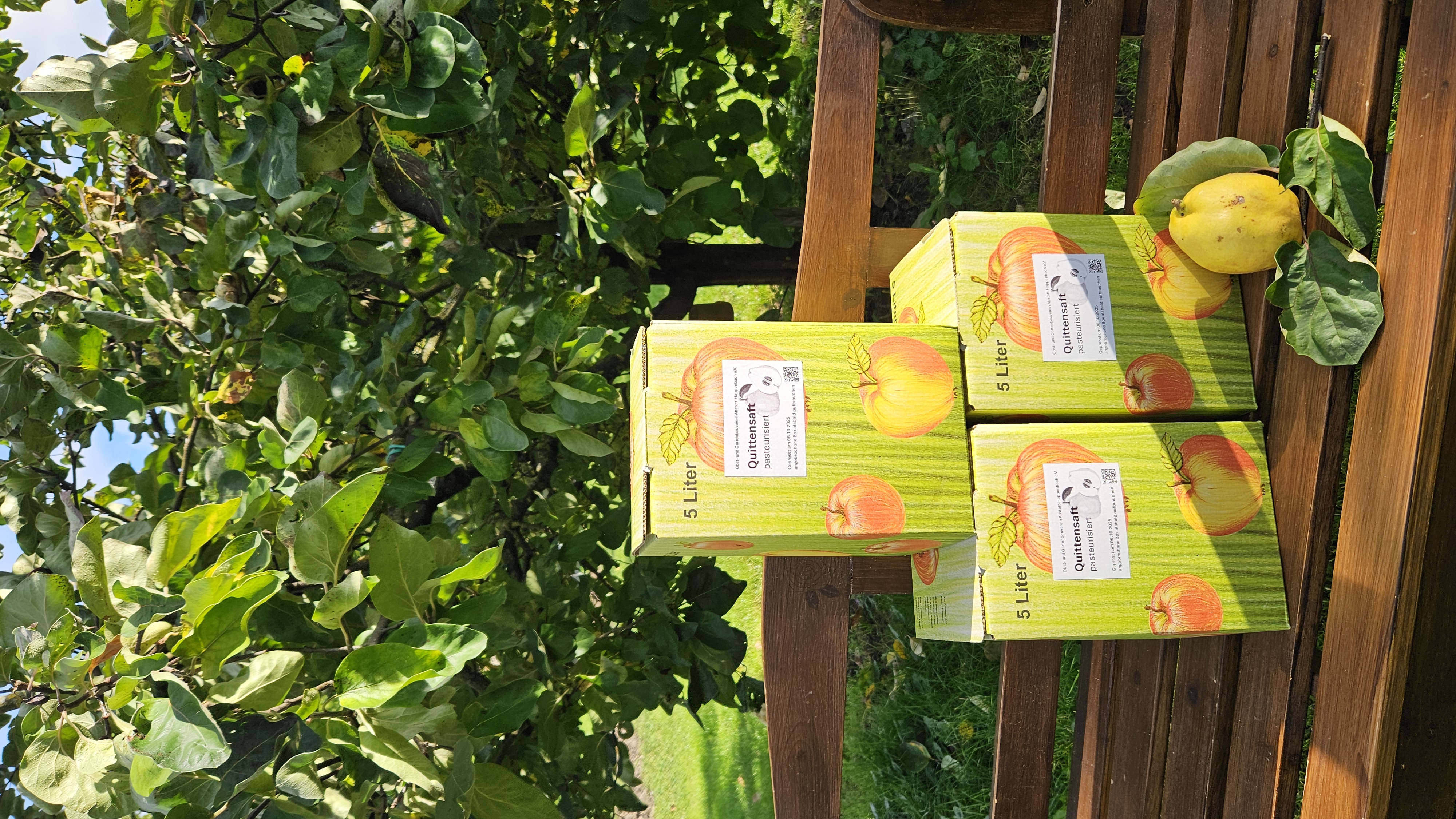 Am Montag wurden die dann gepresst und zu Quittendirektsaft in BaginBox weiter verarbeitet.